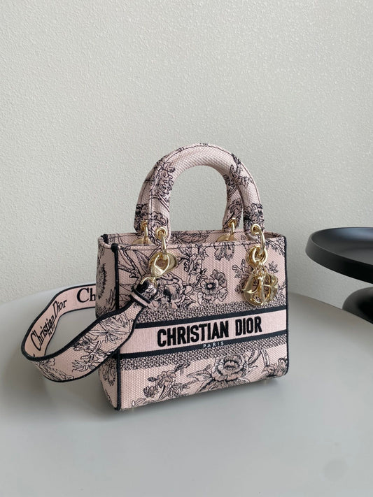 Medium Lady D-Lite Bag Powder Pink Jardin Botanique Embroidery