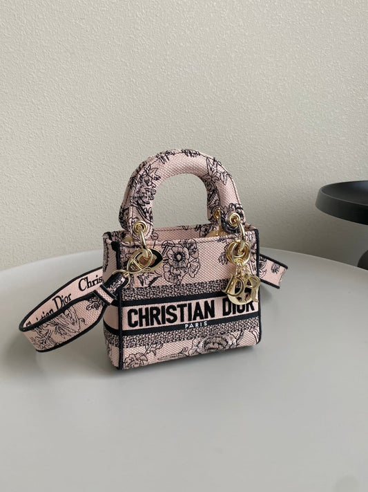 Mini Lady D-Lite Bag Powder Pink Jardin Botanique Embroidery
