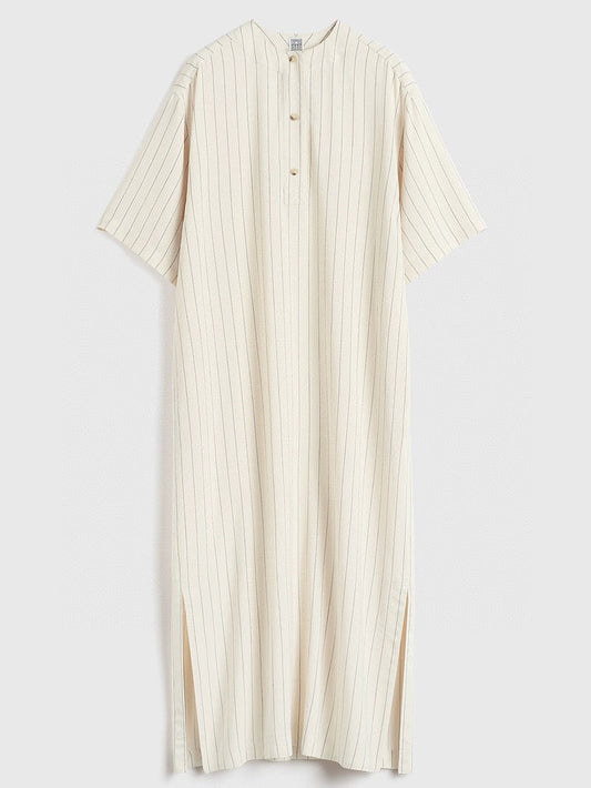 TOTEME Pinstripe Midi Dress – Crepe Fabric, Tunic Silhouette & Buttoned Placket