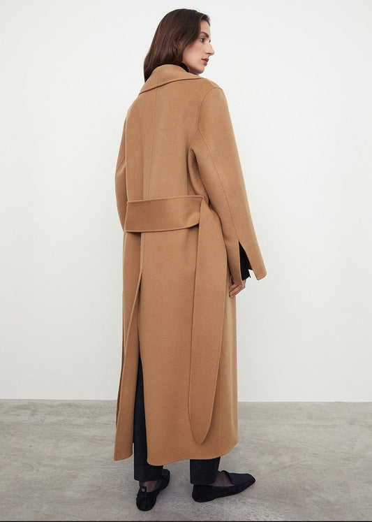 TOTEME Woolen Coat – Extra-Long Length, Belted Waist & Classic Black Camel Color
