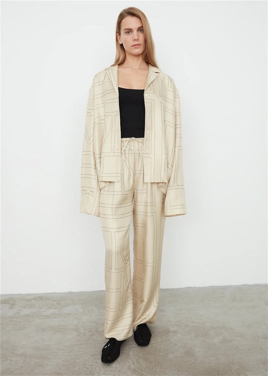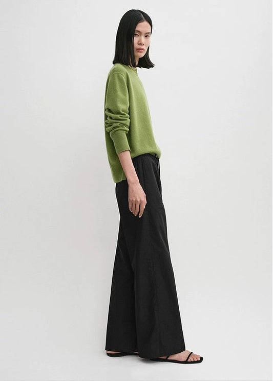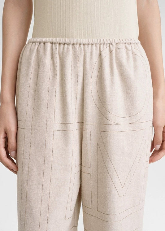 TOTEME Monogram Flannel Trousers – Relaxed Straight-Leg, Elastic Waist & Side Pockets