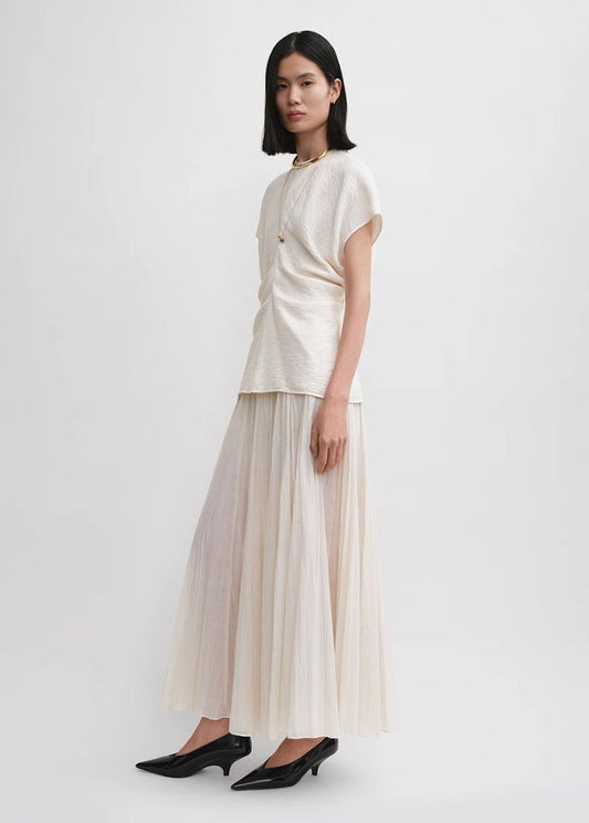 TOTEME Sculpted Drape Top – Crinkled Fabric, Curved Panel Design & Seamless Back Zip
