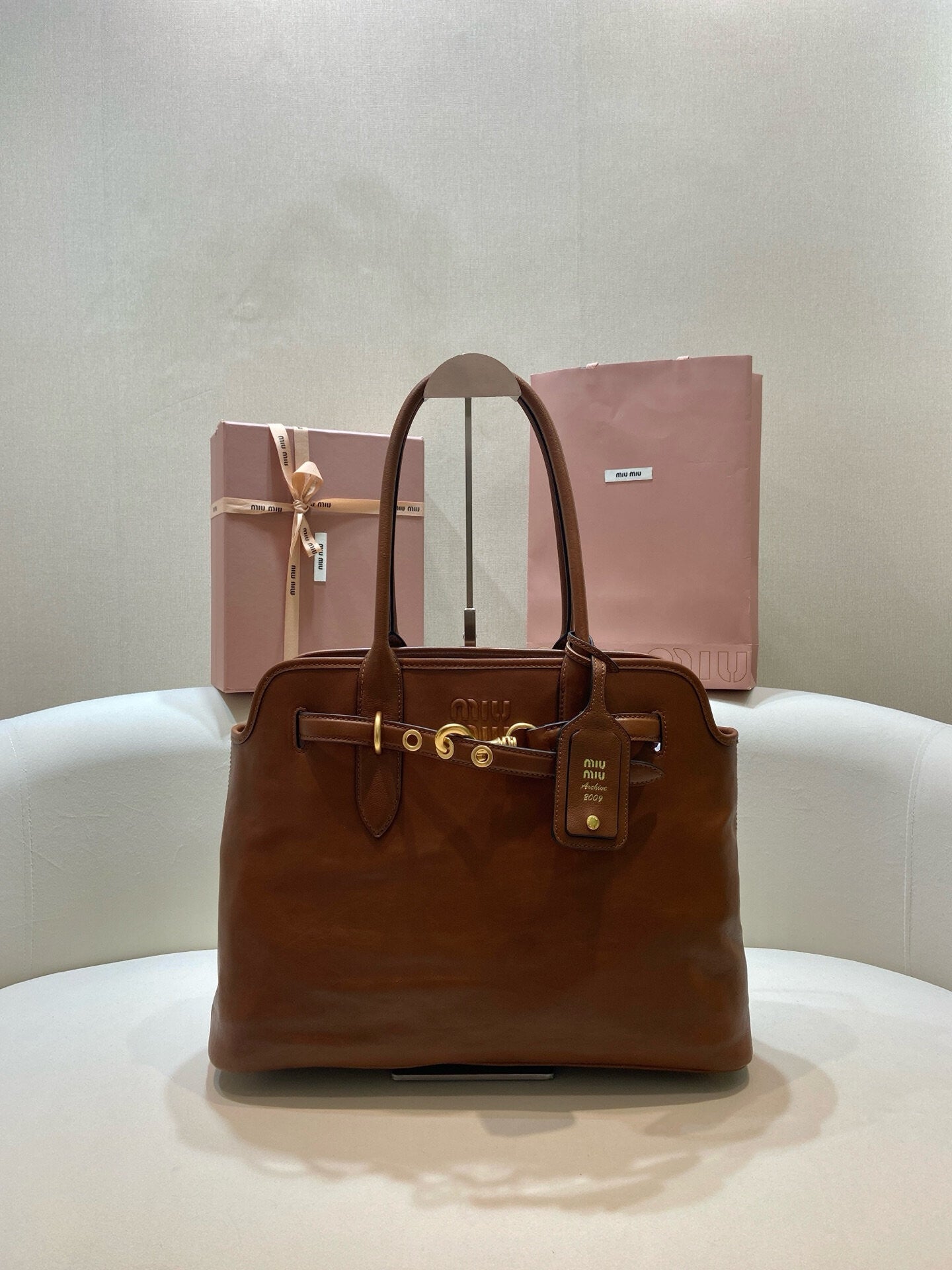 The Aventure Shoulder Brown Bag is the versatile accessory you need. With leather handles, it can be worn as a handbag or shoulder bag, providing both style and convenience. The removable leather trick and purse feet add functionality, while the antiqued gold-tone hardware and embossed logo give a touch of elegance. Stay organized with the linen blend interior and its zipper and patch pockets. Imported, made with 100% lamb leather. Size is 40.0W x 31.0H x 13.0L cm.