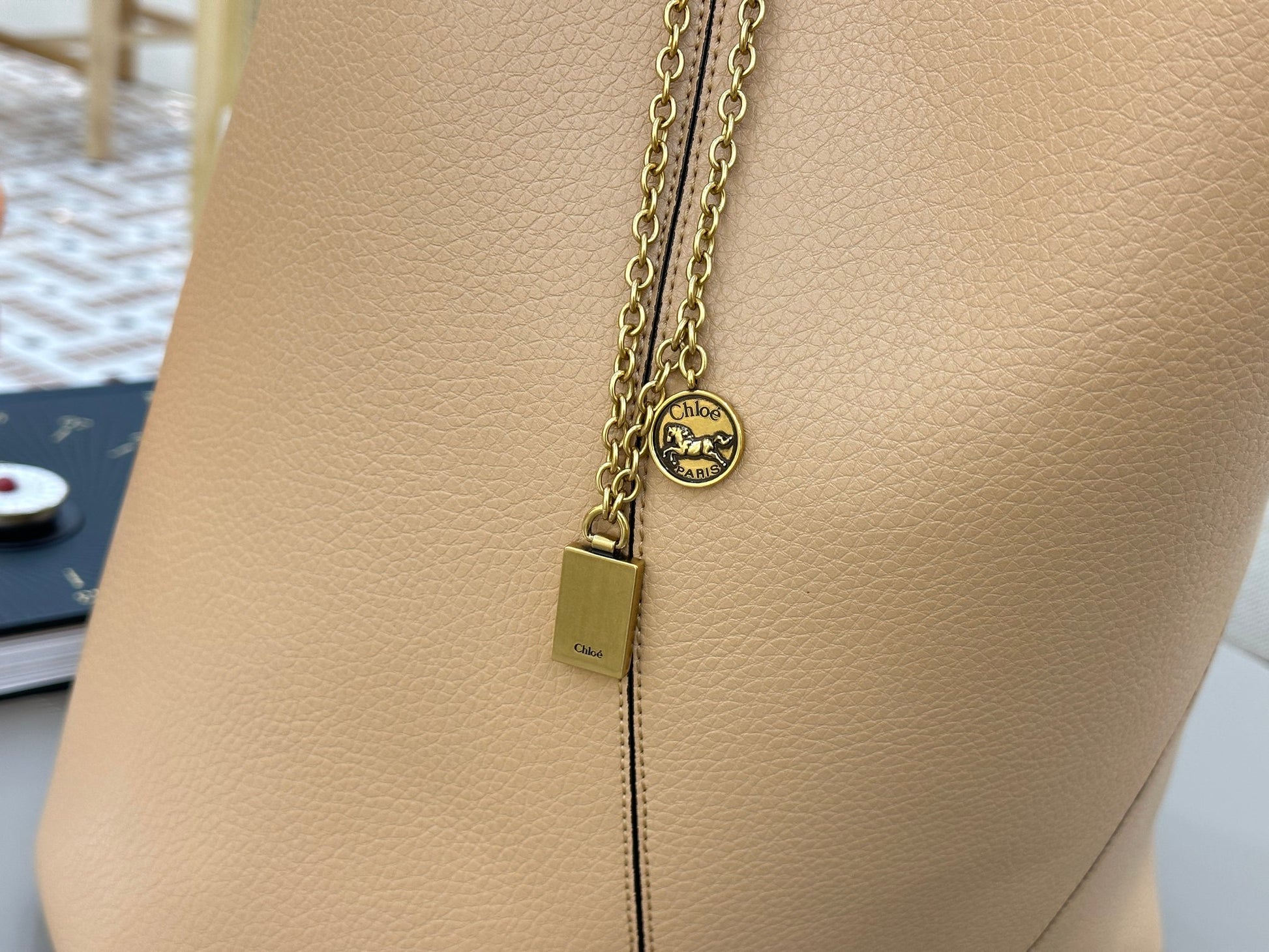 The spin tote can be worn in a few different ways - it's embellished with a gold-tone ring that slips over the top handles for a totally different look, and comes with a detachable strap for the option to carry it cross-body. It’s crafted from panels of textured-leather and comes in a ‘Small’ shape that’ll hold your phone, keys, and cardholder.